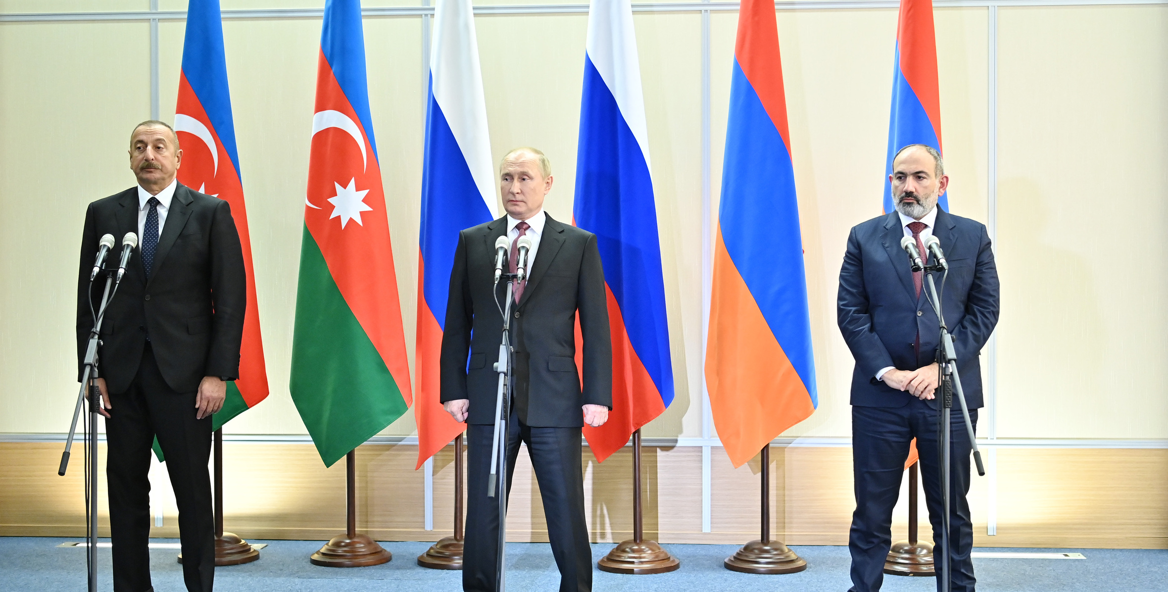 Rusiya Prezidenti, Azərbaycan Prezidenti və Ermənistanın baş naziri mətbuata bəyanatla çıxış ediblər