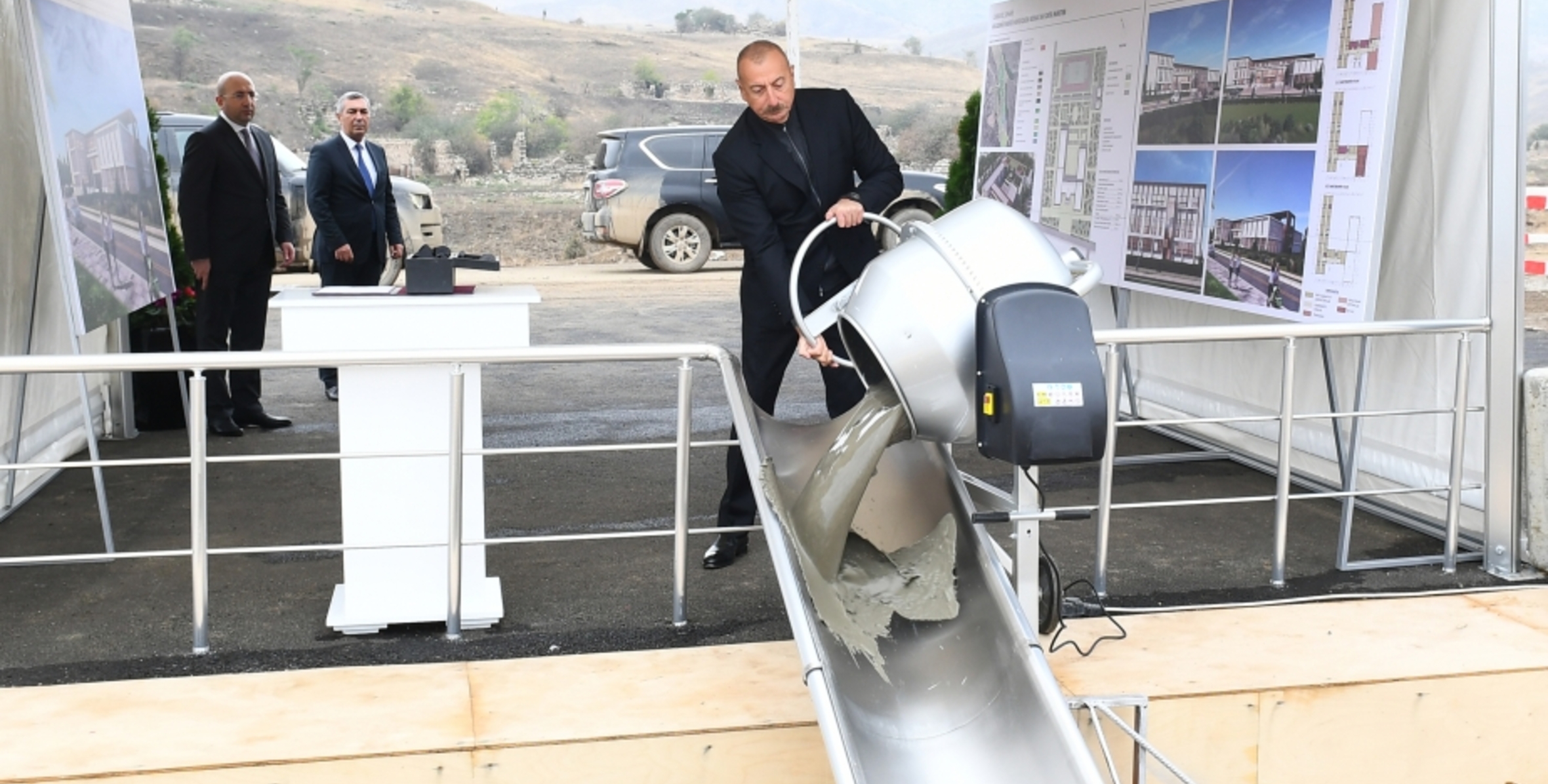 İlham Əliyev Cəbrayıl şəhərində ilk çoxmənzilli yaşayış məhəlləsinin təməlqoyma mərasimində iştirak edib