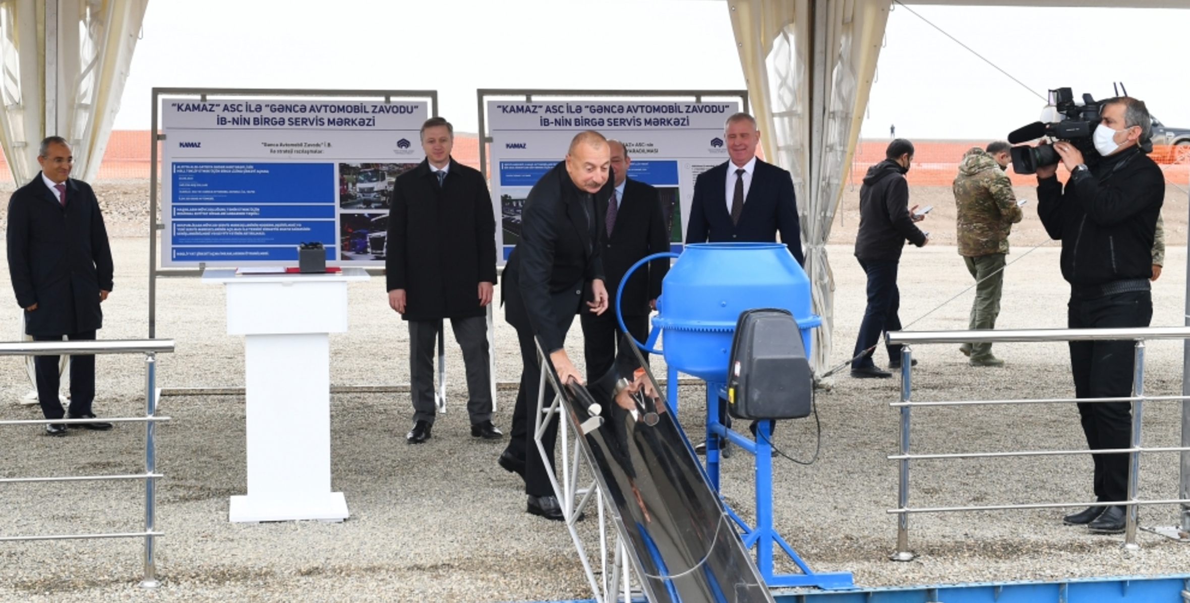 İlham Əliyev “KamAZ” ASC ilə “Gəncə Avtomobil Zavodu” İstehsalat Birliyinin birgə servis mərkəzinin təməlqoyma mərasimində iştirak edib
