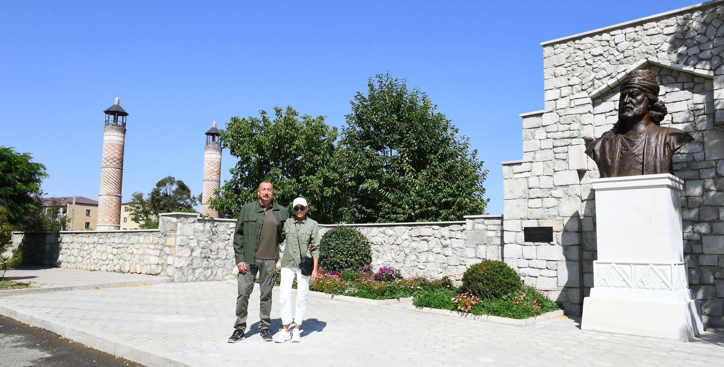 İlham Əliyev və birinci xanım Mehriban Əliyeva Molla Pənah Vaqifin Şuşada büstünün açılışında iştirak ediblər